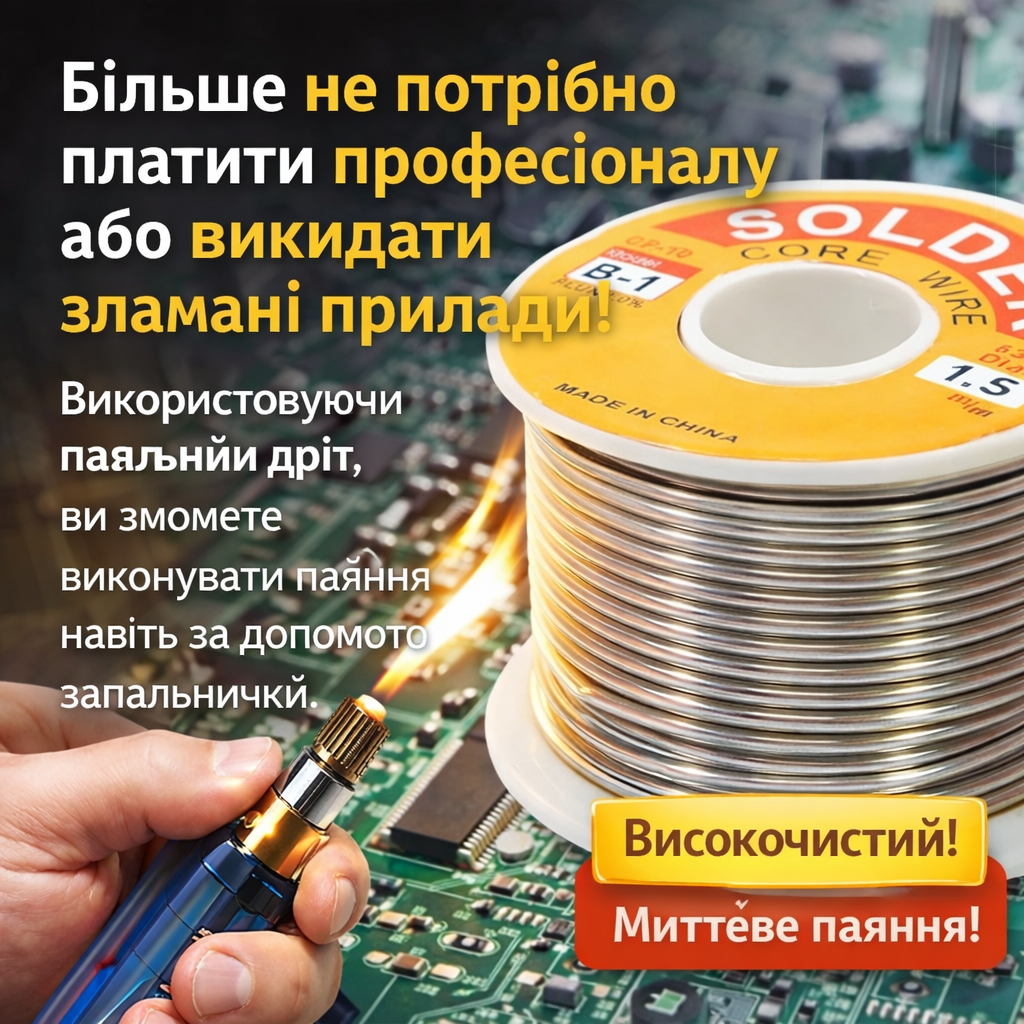 Наш припійний дріт виготовлений із високочистої сировини з додаванням 2,2% спеціального флюсу. Він має олово-свинцевий сплав та безсвинцевий флюс, що запобігає розриву та сповільненню окислення, забезпечуючи швидший потік олова і мінімальні домішки.
